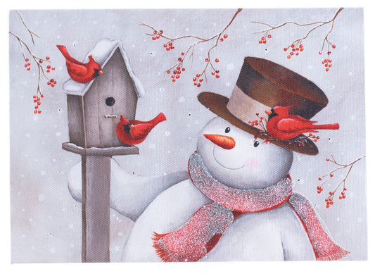 DEMAGNNIE Snowman Cardinal Looking Gut Up Canvas Lighted Pictures w/Timer - Small Christmas Pictures that Light Up Snowman Decor Holiday, LED Twinkling Lighted Xmas Tabletop Canvas Prints 6x8 Inches