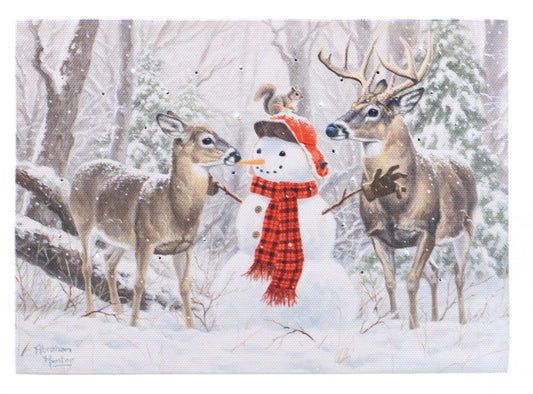DEMAGNNIE Light Up Snowman Reindeer Painting w/Timing LED & Fiber Optic Twinkling Lights- Lighted Canvas Christmas Pictures 8x6 inches Framed Art Ready to Hang w/Kickstand for Tabletop or Wall Decor