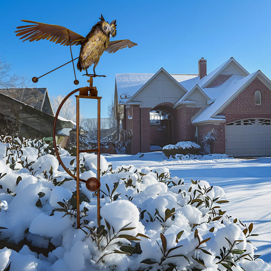 Huge Metal Owl Rocker, Decorative Garden Stakes with Flapping Wings-DEMAGNNIE