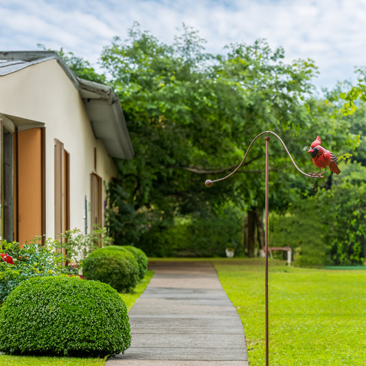 Cardinal Garden Balancer, Natural Metal Yard Balancing Art Bird Stakes-Crafted