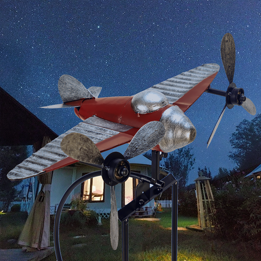 Airplane Wind Spinner w 2 Propellers / Metal Garden Stakes/ Windmill Weather Vane-Rotates in Wind