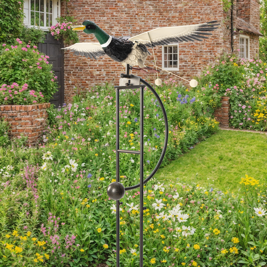 Large Metal Duck Rocker, Garden Decor Stake, Swaying and flap wings in wind