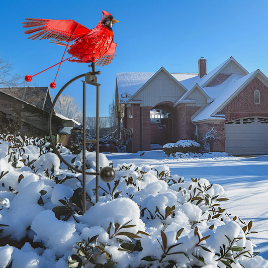 Large Cardinal Rocker Flapping Wings, Metal Garden Stake w Rocking Motion