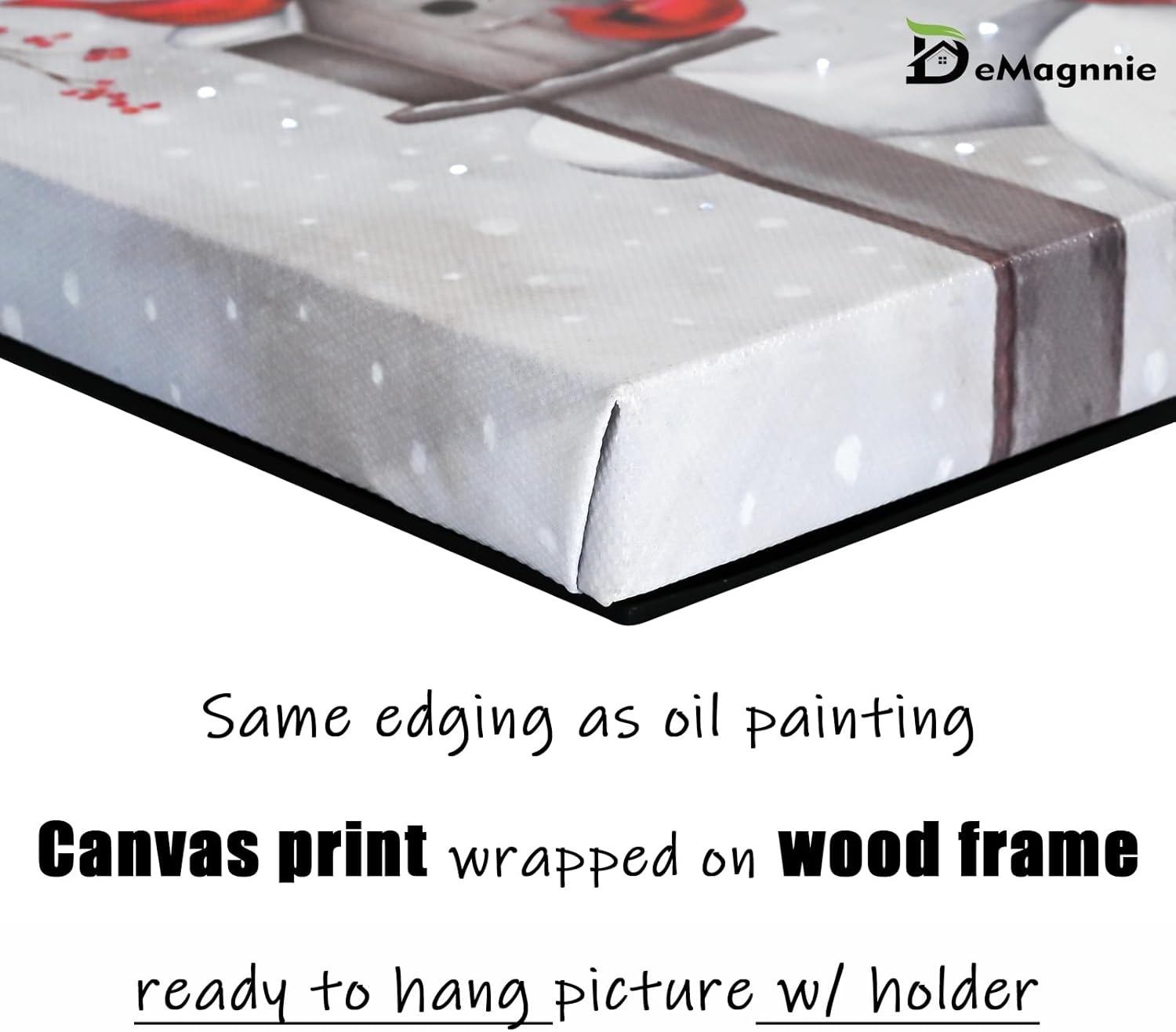 - WARM TIPS: DEMAGNNIE LED tabletop holiday pictures is original artwork painted by Artist, a handcraft Merry Christmas gift light up Xmas Snowman print, if it does not arrive in good condition, just return or exchange it.